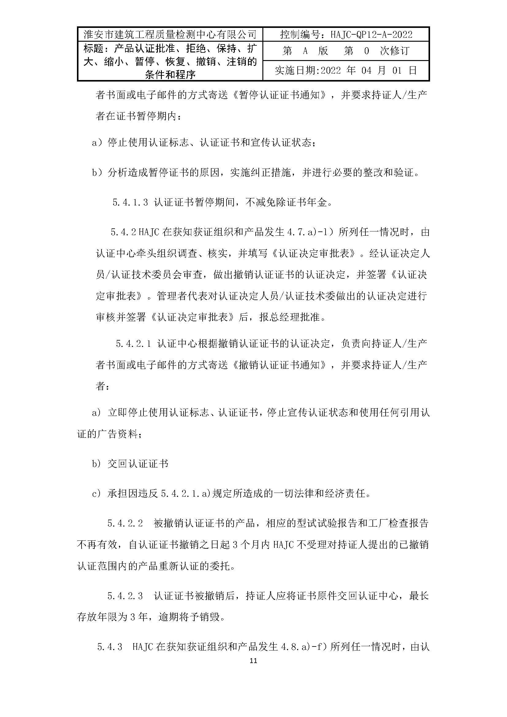 認證資格的批準/保持/暫停/撤銷和注銷、認證范圍擴大/縮小/變更的規(guī)定